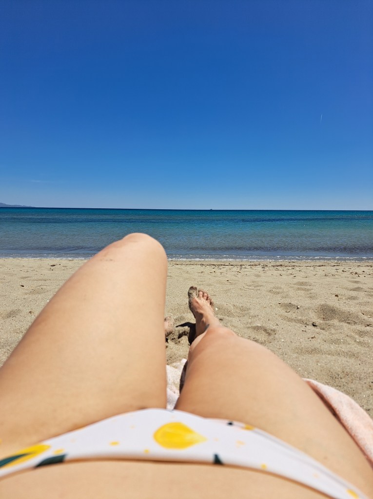Szerdán, utunk második napján ígérkezett a legmelegebb idő, így elmentünk Poettóba, mely Cagliári része, busszal közelíthető meg, ugyancsak 1,3 EUR/út áron, a pályaudvartól nem messze induló buszok valamelyikével (PF, PQ vagy az 5-ös, ami kicsit beljebb áll meg, nem a parton.). Itt található Olaszország leghosszabb, 13 km-en elnyúló tengerpartja. Nem nagyon voltam még homokos tengerparton. 26-28oC volt, fújt a szél, a hűs tenger a parton nem érződött, a homok délutánra már forró volt, nem tudom, hogy viselhető el nyáron. A víz 16 fokos volt, de elhatároztam, ha fene fenét eszik is, megfürdök benne. Harmadik próbálkozásra pár percet úsztam a smaragd zöld vízben. Becsípődéseim egyike, hogy meg kell kóstoljam a tengert, hogy elhiggyem, sós. Bizony az volt és nézzen bárki bolondnak, más íze volt, mint Trogirban. Konkrétan sósabb.
