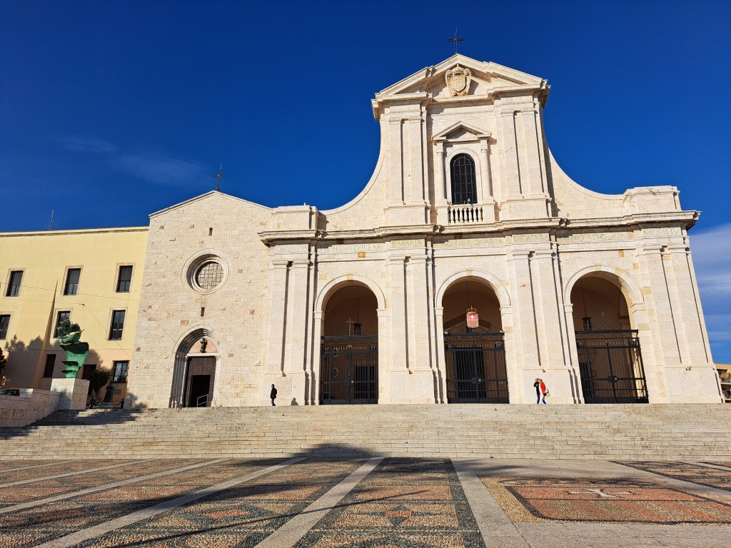 Még a tengerpartról visszafele menet megláttam egy templomot, ami felkeltette az érdeklődésemet. Ez nem más volt, mint a kurta nevű Basilica di minore Nostra Signora di Bonaria, vagyis Miasszonyunk Bonaria temploma. Ez Szardínián belül a legfontosabb Mária kegyhely. Az 1300-as években épült, majd az 1700-as években bővítették és templomot építettek hozzá. A II. világháború súlyosan megrongálta, de felújították. Mellette helyezkedik el az azonos nevű sírkert. A bazilikát több pápa is meglátogatta, köztük II. János Pál pápa is, akinek szobra megtalálható a templomban és olyan élethű, hogy vártam, mikor pislog egyet.