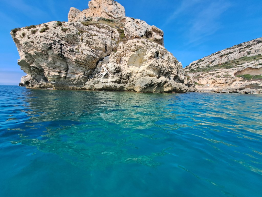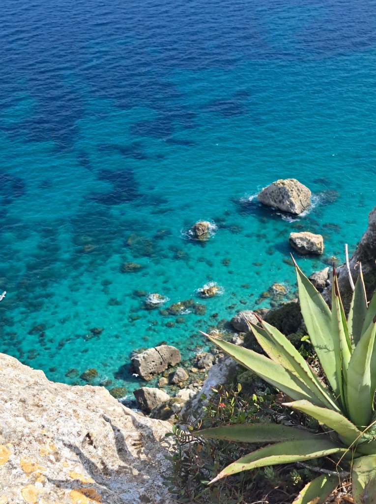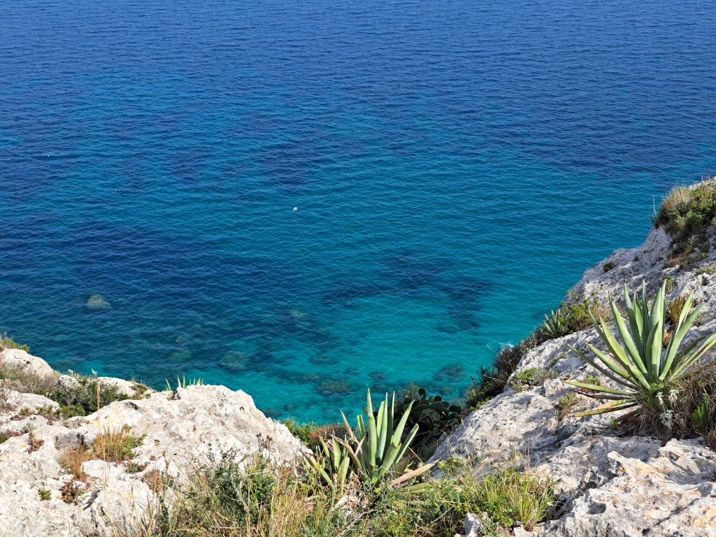 A hajókázás után megebédeltünk a belvárosban majd visszabuszoztunk Calamosca felé. Kipróbáltuk milyen az olasz tömegközlekedésen lógni… Kellett a pénz Aperol spritzre. Neeem, igazából nem volt hol jegyet venni, visszafelé meg már úgy belejöttünk, hogy nem is törtük magunkat. Szóval, Calamosca. A buszról ott kell leszállni, ahol kezdődik a poettói partszakasz, majd egy éles hátraarccal a katonai területen átvágva (amúgy ez a kijelölt túraút) felkapaszkodtunk a hegyre. Tudom, sokszor használom a csodás kifejezést, de tényleg az. Lélegzetelállító a látvány. Nem kell filter a fotókra, a valóságban van olyan színe a víznek. És az a buja növényzet. A túra nem vészes, sima tornacipővel, kezdő kirándulóknak is odafigyeléssel bejárható. Volt egy srác, aki tangapapucsban mászta meg. Vannak olyan részei, ahol a meredek sziklafalon kell hegyet mászni, de az egyszerű túrázónak is felejthetetlen élményt tud nyújtani így is.